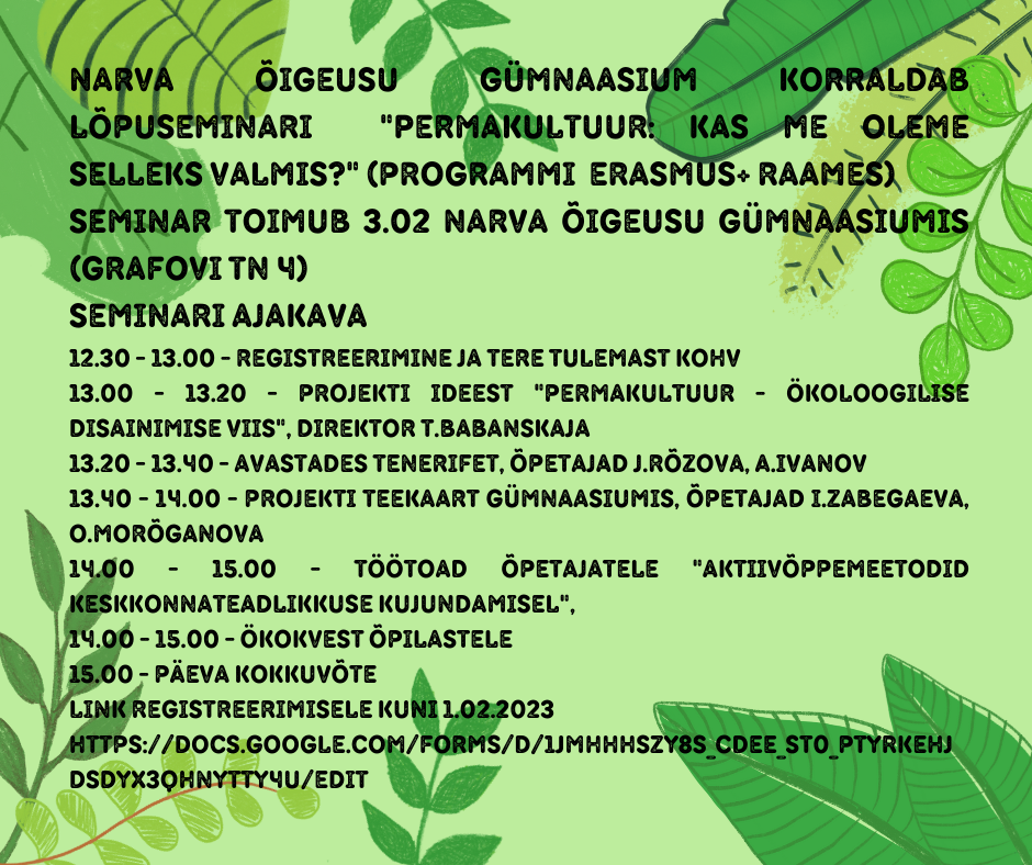 Osaleme Eesti Vabariigi iseseisvuse aastapäevale pühendatud riigilipu heiskamise tseremoonial. Tseremoonia algab 24. veebruaril kell 7:18 Narva linnuse territooriumil. Koguneme kell 7:00 lossi territooriumil meie gümnaasiumi lipuga. Oodatud on kõik Narva Õigeusu Gümnaasiumi pere esindajad.